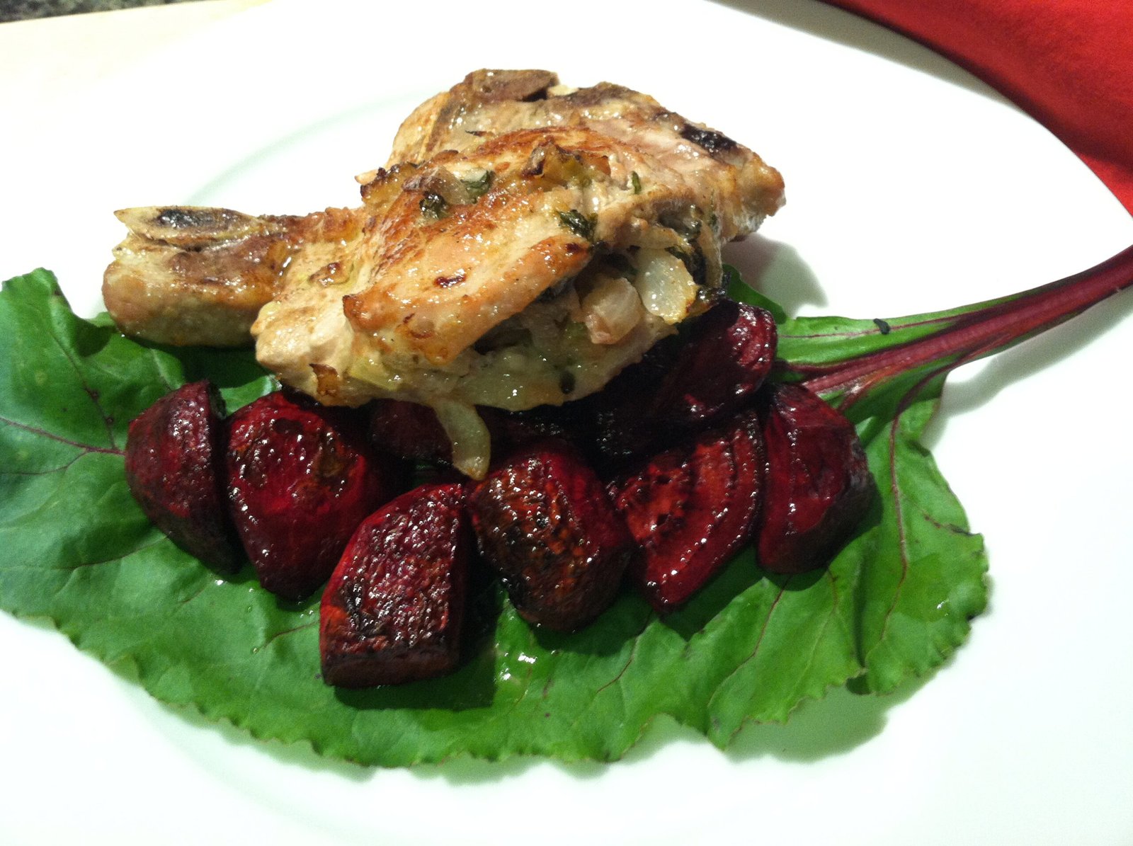 Stuffed Pork Chop Served With Roasted Red Beets