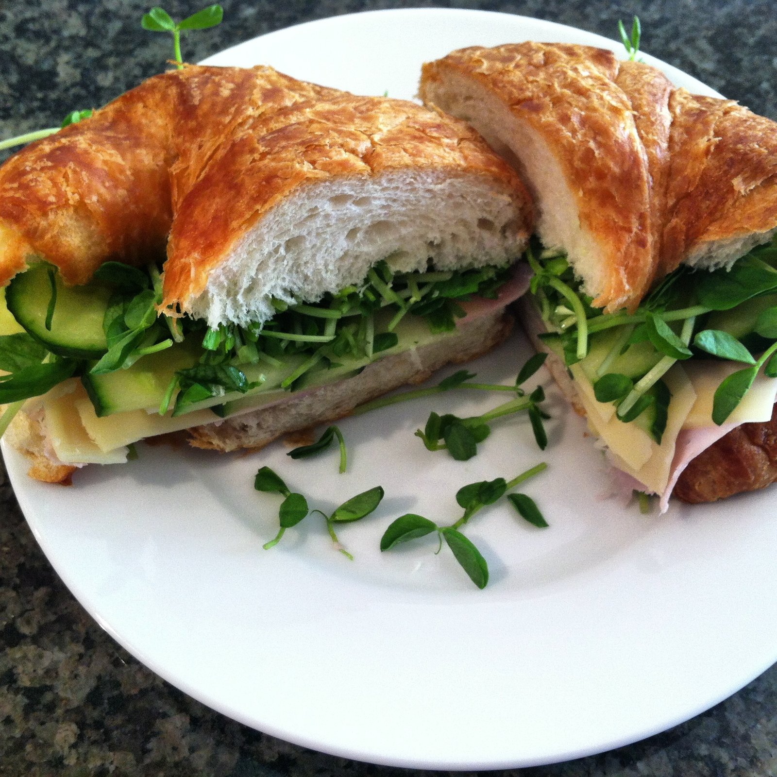 Croissant with Ham, Swiss Cheese, English Cucumber and Organic Pea Shoots