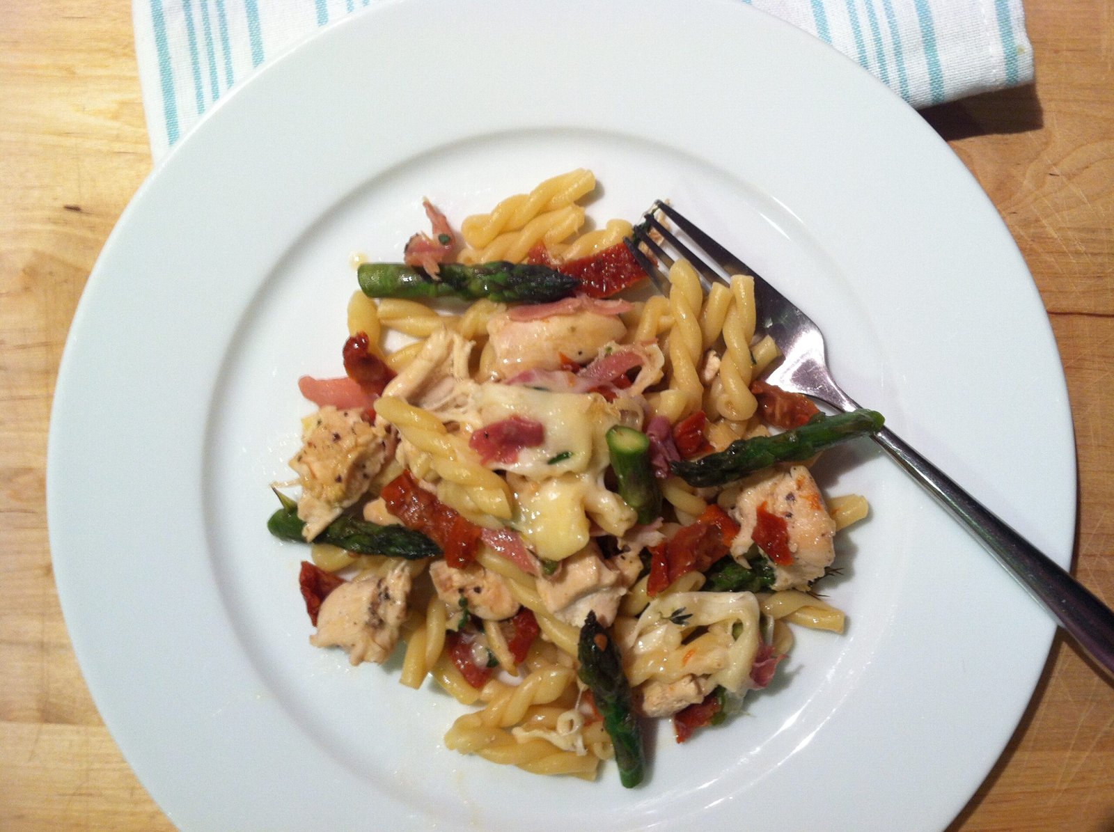 Gemelli Pasta with Chicken, Asparagus and Sun dried Tomatoes
