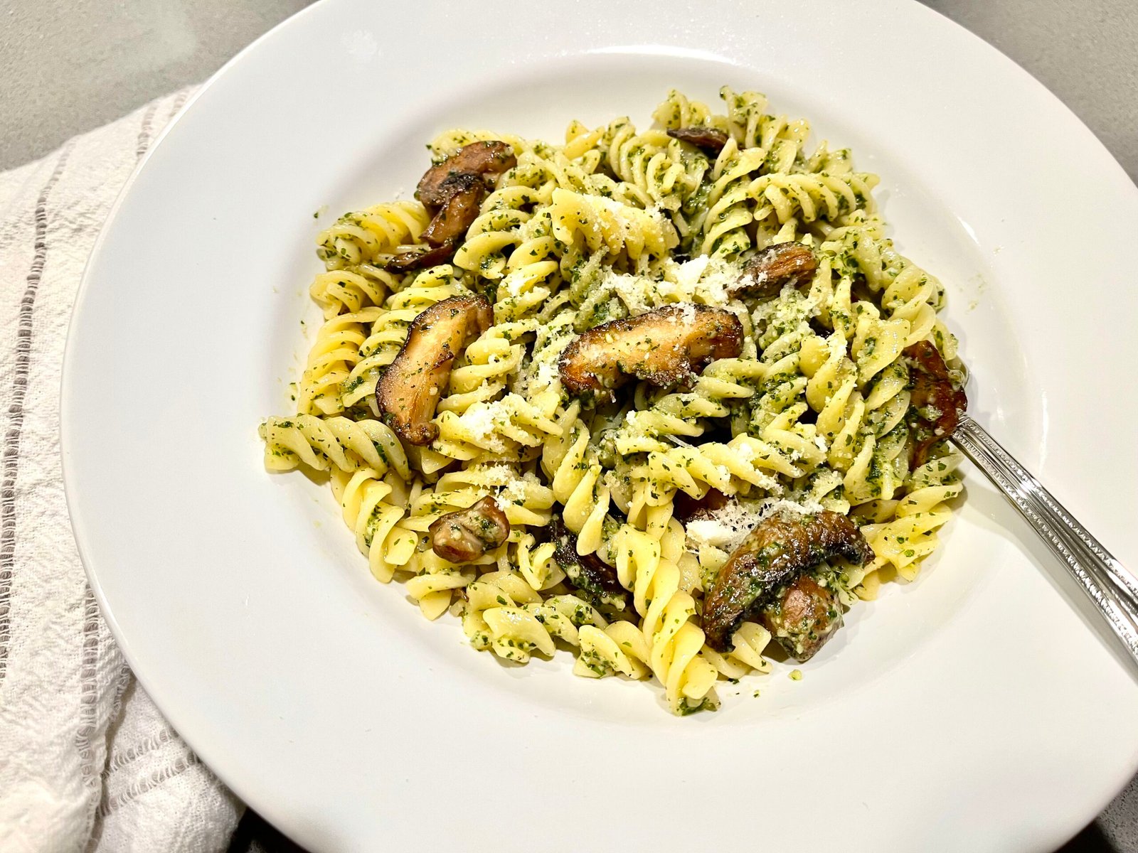 Fusilli Pasta with Basil Pesto & Sauteed Mushrooms