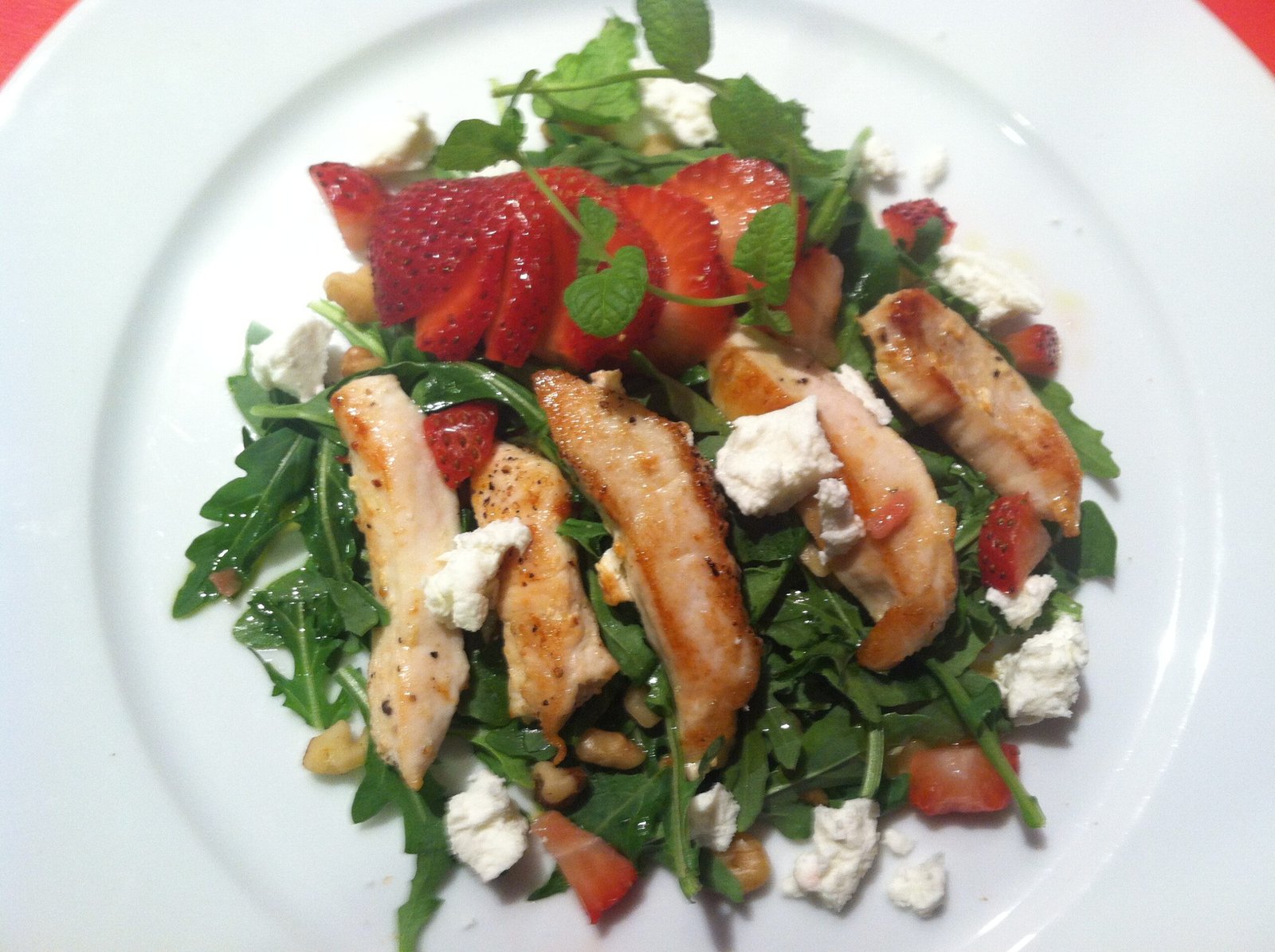 Grilled Chicken served over Arugula Salad with Strawberries and Walnuts
